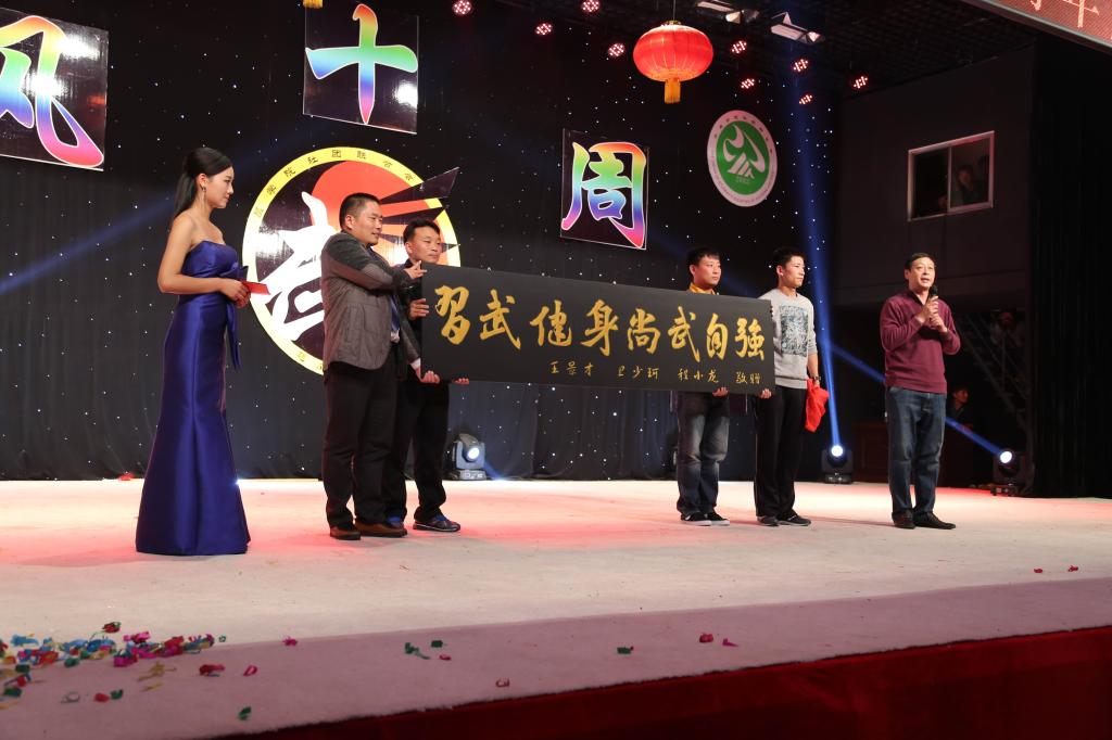 气势磅礴的《旗舞》晚会序曲后,校团委书记张鹏辉致开幕词,张书记充分肯定了飓风武术俱乐部在过去十年所取得成绩,对俱乐部在公司校园文建设和员工综合素质拓展中所起的积极作用给予了高度评价,并对俱乐部在今后的发展提出了新的要求。随后,公司党总支书记王建强致欢迎词,王书记首先向出席晚会的领导、嘉宾和师生们表示了热忱的欢迎和衷心的谢意,王书记在讲话中对飓风武术俱乐部拼搏的十年,成长的十年进行了深情回顾,并展望了俱乐部今后的发展设想。