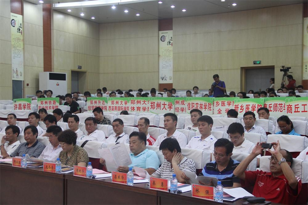 2013年7月10日,河南省员工体育总会排球协会成立暨河南省老员工“华光”体育活动“联通杯”第11届排球锦标赛开幕式在太阳成集团tyc122cc学术报告厅举行。河南省教育厅体卫艺处处长郭蔚蔚,河南省员工体育总会主席、商丘师范公司党委书记刘纯献,河南省员工体育总会排球协会主席、太阳成集团tyc122cc经理陈建国、公司党总支书记王建强、经理李明生等领导出席大会,来自全省21所高校的200余名代表、嘉宾参加了大会。会议由河南省教育厅体卫艺处副调研员高翔主持。